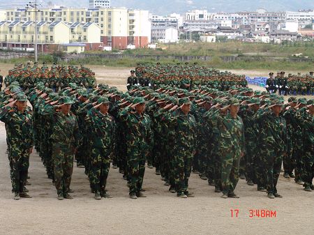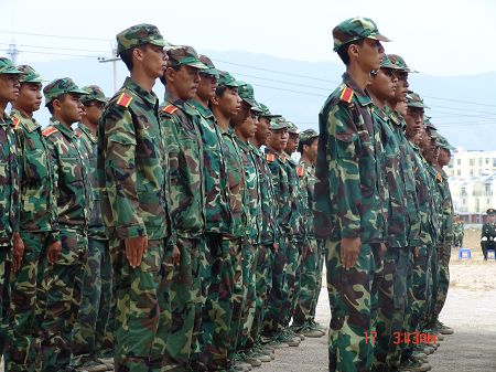 典礼第四项,副校长、军训领导组组长董大校作军训总结,他说:此次军训达到了预期的目的,取得了圆满成功,其原因有六:领导重视,准备充分;建章立制,科学规范;严格训练,保质保量;严格管理,提高素质;学习刻苦、成效显著;保障到位,扎实有效。