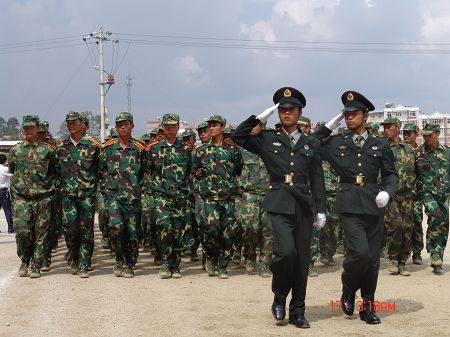 (党委宣传部 张玉超)08年9月17日下午2时40分,我校08级新生军训结业典礼在新教学楼前举行。学生处处长刘庚碧主持典礼,典礼第一项,全体起立、奏《国歌》。校旗飘扬在和煦的午风中,激昂的国歌声中,主席台上的领导体味着完成对新生第一培养任务的喜悦,新生回味着军训的酸甜苦辣、感悟成长的奥秘。