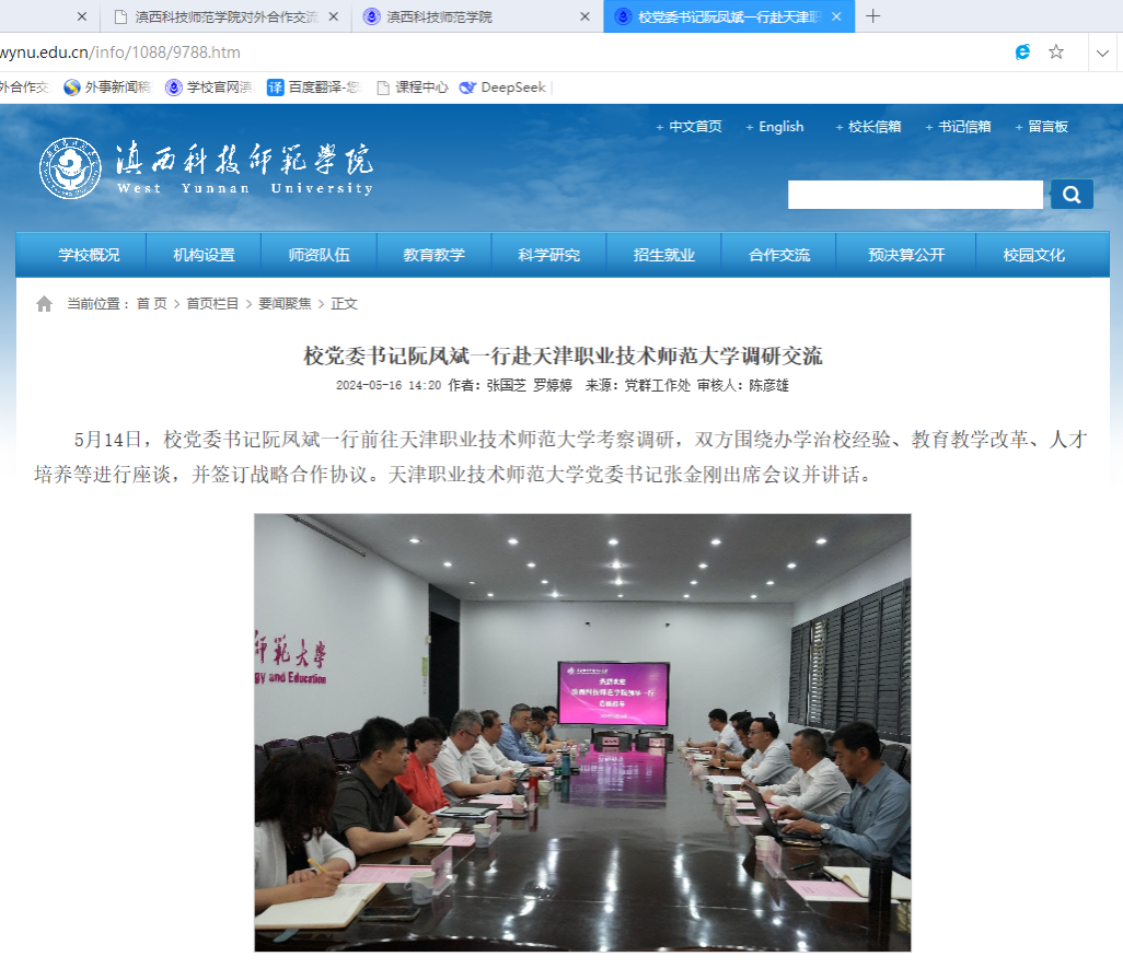 (一)推进职业教育调研工作。学校领导先后带队到天津职业技术师范大学、天津市南开区创新创业园区、临沧沿边三县等地调研,计划通过多点部署实施中外职业教育合作。