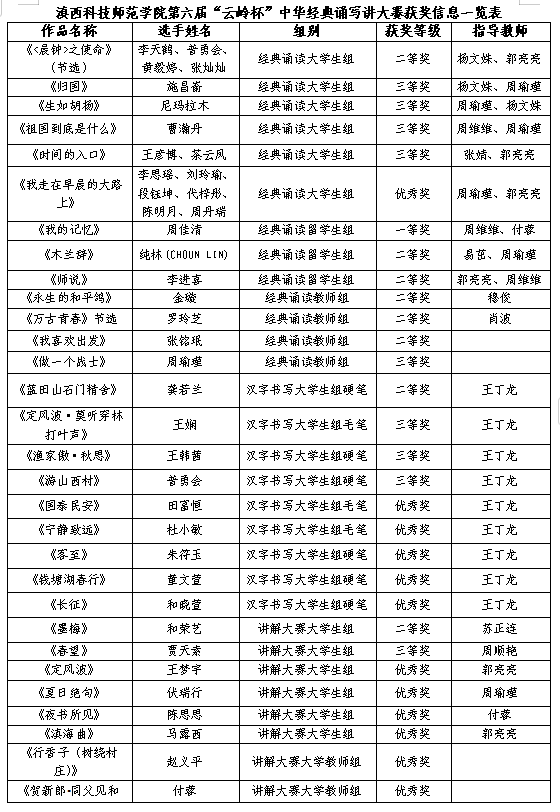 留学生参加“第六届中华经典诵读讲大赛”获奖情况