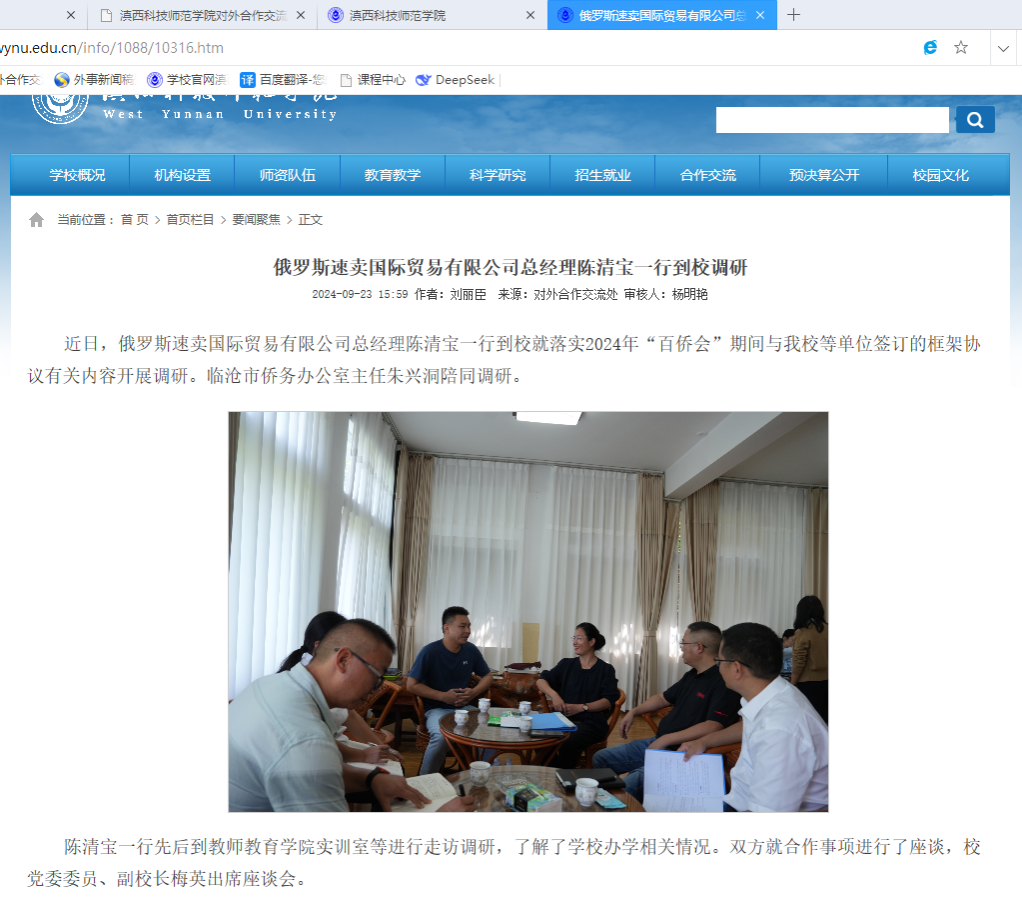 俄罗斯速卖国际贸易有限公司总经理陈清宝一行到校调研