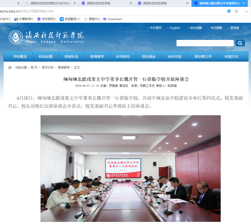 缅甸缅北腊戌果文中学董事长魏开智一行莅临学校开展座谈会
