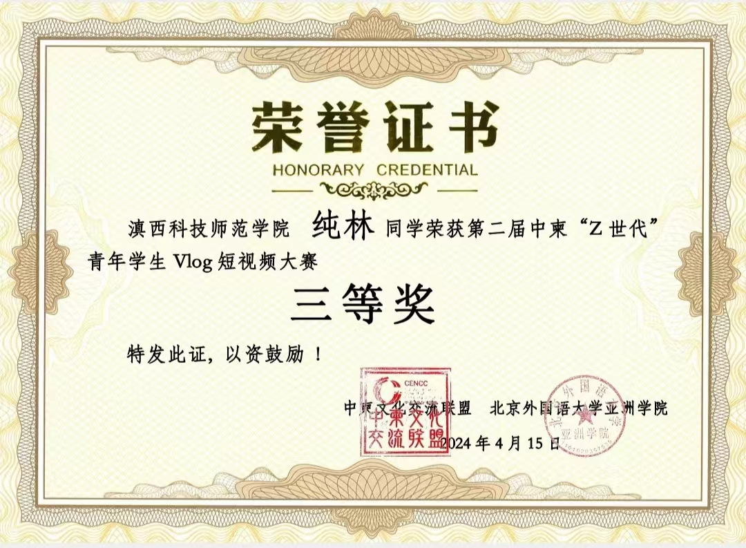 留学生参加第二届中柬“Z世代”青年学生Vlog短视频大赛获奖情况