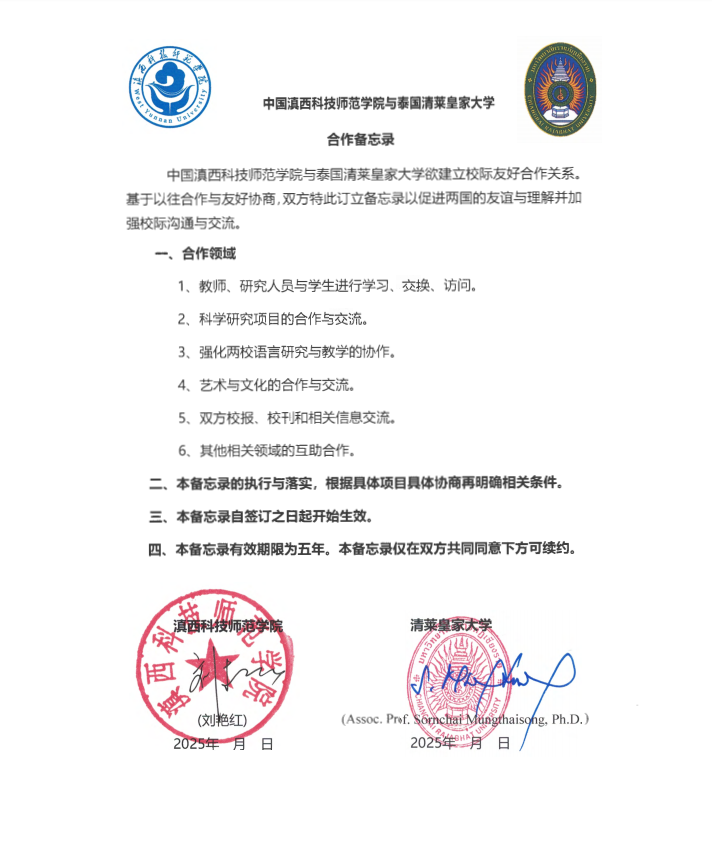 与泰国清莱皇家大学签订合作备忘录